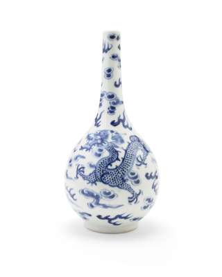 CHINESE MING STYLE BLUE AND WHITE BOTTLE VASE