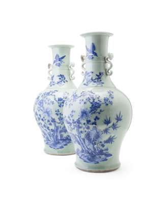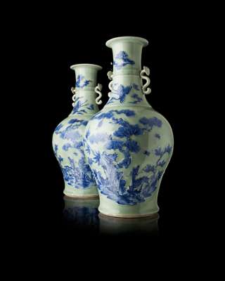 PAIR OF CHINESE BLUE AND CELADON GROUND VASES