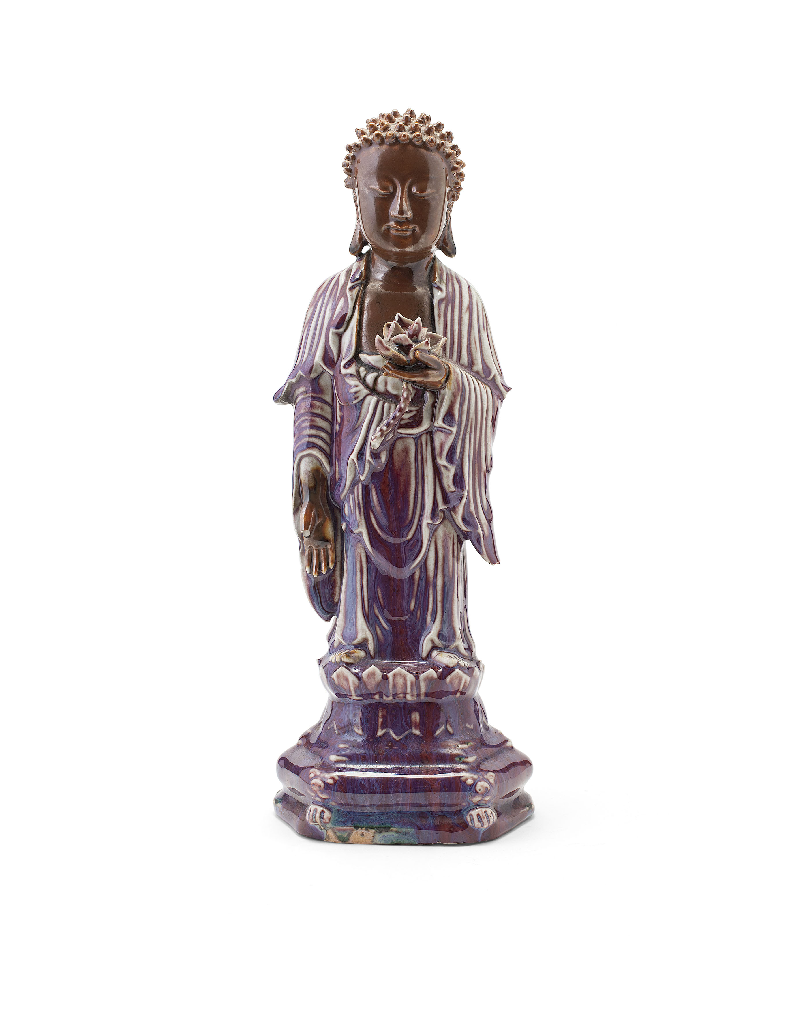 the figure modelled holding a lotus flower and standing on a lotus throne