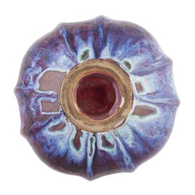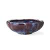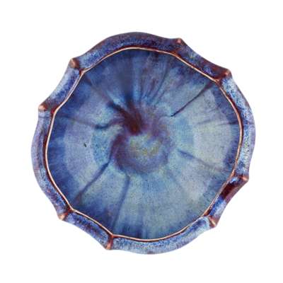 the shallow body moulded with lobes and an inverted rim, in a thick purple / blue glaze