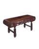 the panelled rectangular scroll top above a pierced and scroll carved frieze with two short drawers, raised on shaped supports