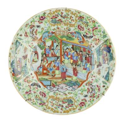 CHINESE CANTON FAMILLE ROSE CELADON CHARGER