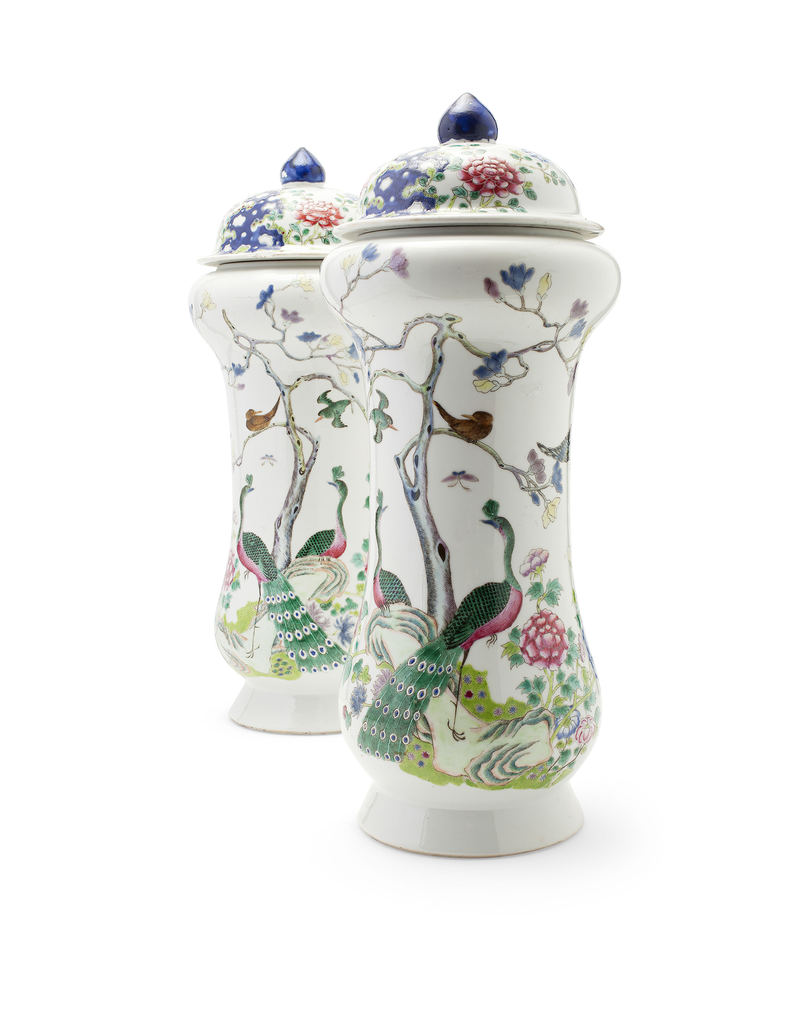 PAIR OF CHINESE FAMILLE ROSE COVERED VASES