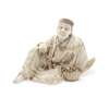 modelled as a seated figure with a gourd around his neck and basket of fruit at his side, unsigned