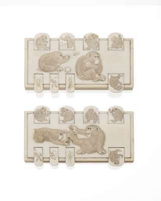 PAIR OF JAPANESE IVORY WHIST MARKERS