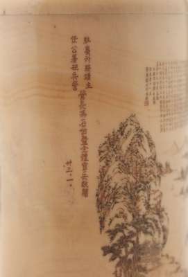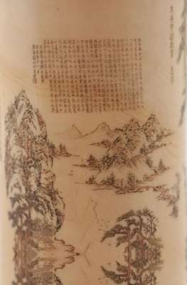 the sides engraved with a mountainous landscape and palace view with figures, inscribed