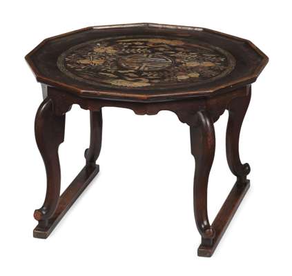 CHINESE STAINED PINE AND MOTHER OF PEARL KANG TRAY TABLE