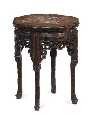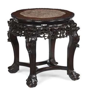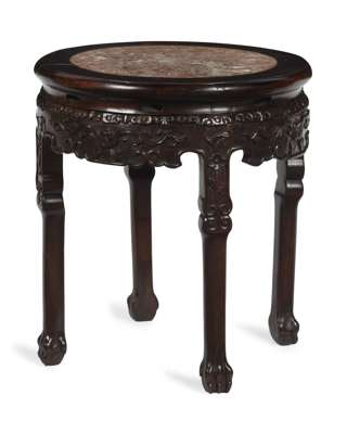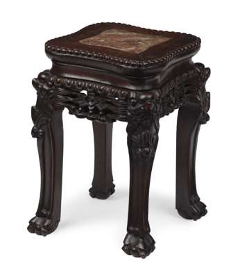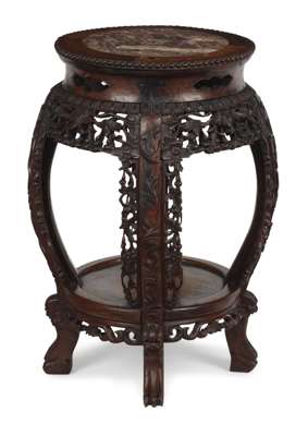 CHINESE HARDWOOD MARBLE TOP STAND