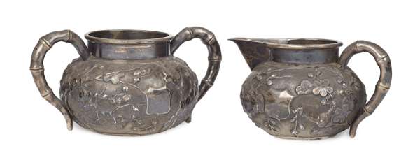 CHINESE EXPORT SILVER SUGAR BOWL AND CREAM JUG