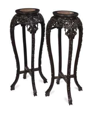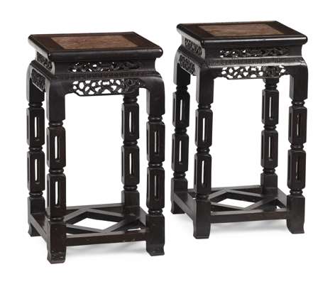 PAIR OF CHINESE HARDWOOD MARBLE TOP STANDS