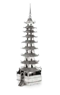 CHINESE SILVER PAGODA MODEL
