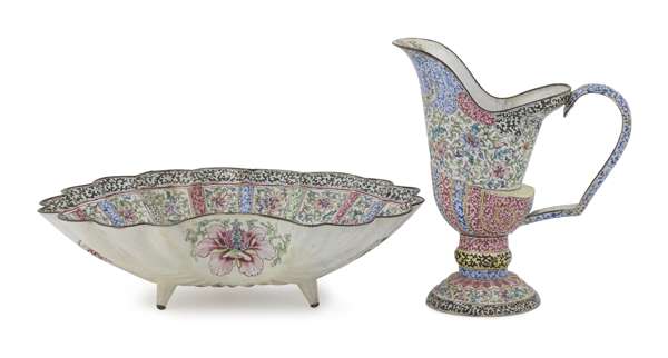 CHINESE ENAMEL EWER AND BASIN