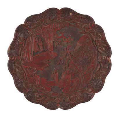 CHINESE CINNABAR LACQUER SCALLOPED TRAY