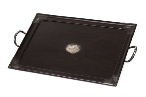 CHINESE SILVER MOUNTED HARDWOOD TRAY