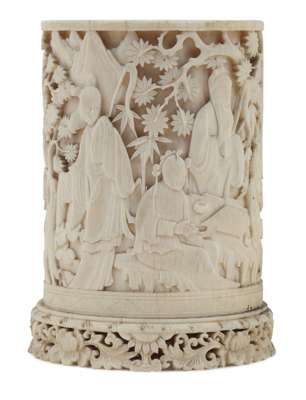 CHINESE CANTON CARVED IVORY BRUSH POT