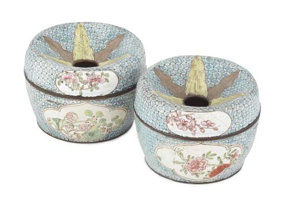 PAIR OF CHINESE ENAMEL COVERED VESSELS
