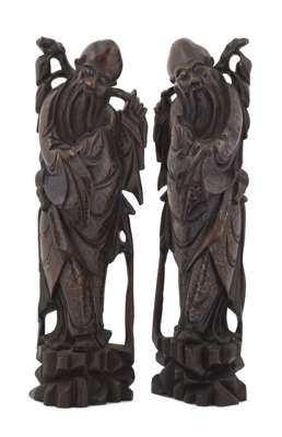 PAIR OF CHINESE CARVED HARDWOOD FIGURES OF SHOU LAO