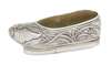 in the form of a slipper embossed with lilies, bat and shou symbol, with a green plush insert