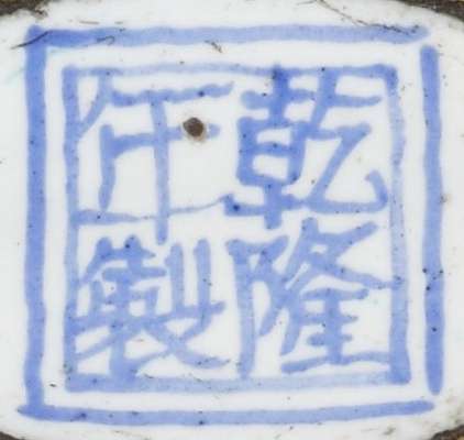 of flattened ovoid form, painted with puppies, birds and a white pine tree in a rocky landscape, blue four character seal mark to base