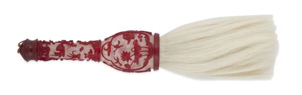 UNUSUAL CHINESE PEKING TWO COLOUR GLASS FLY WHISK