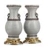 PAIR OF CHINESE CRACKLE GLAZE GILT BRONZE MOUNTED VASES