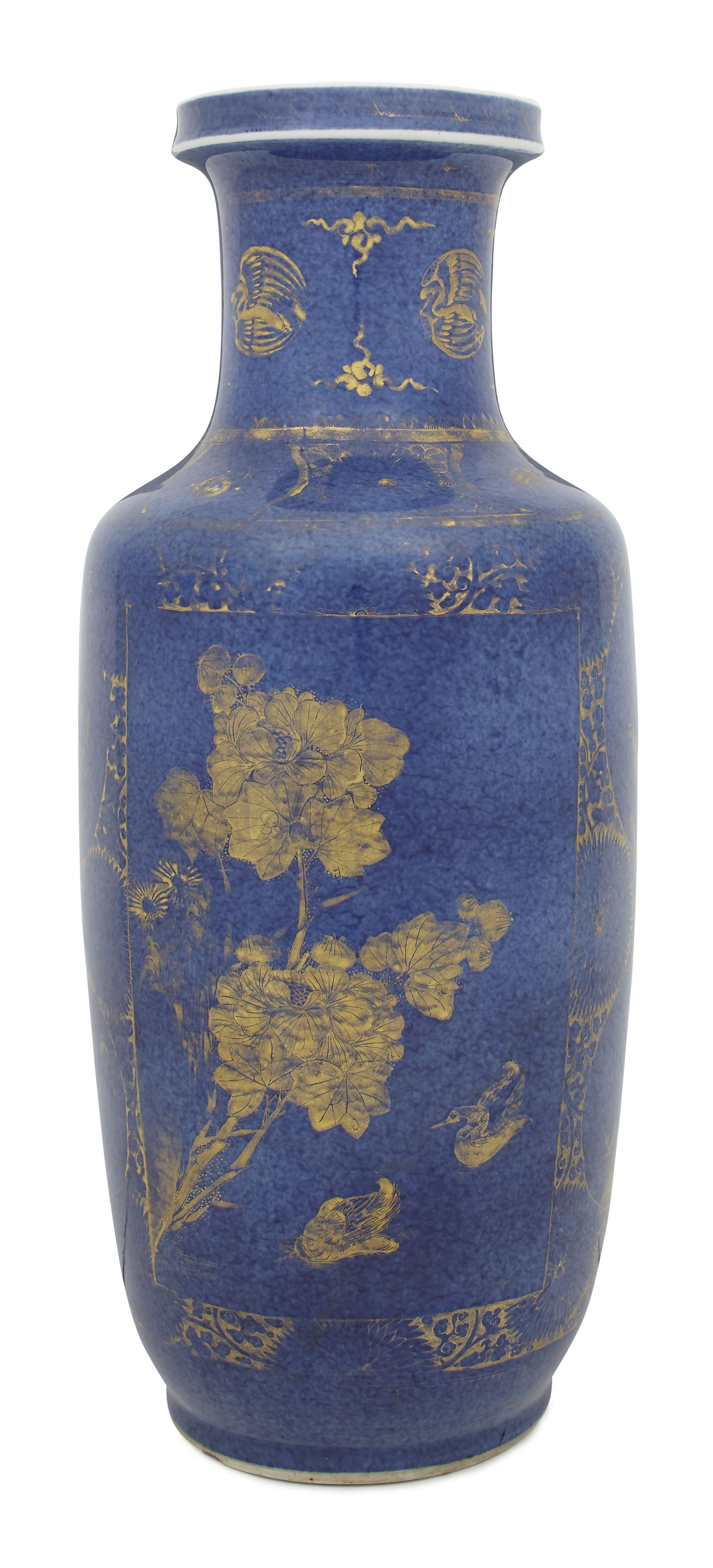 CHINESE GILT DECORATED POWDER BLUE ROULEAU VASE