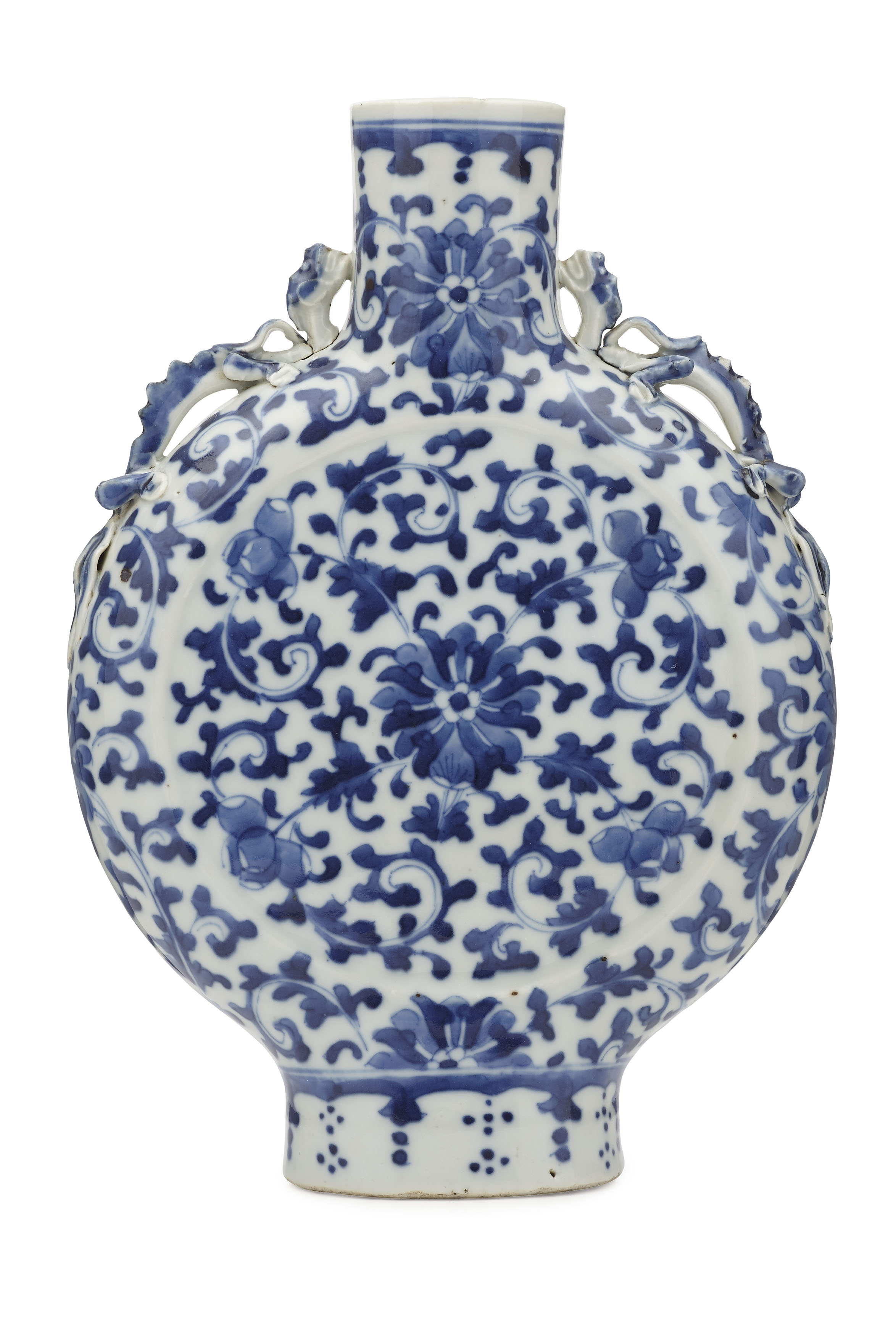 CHINESE MING STYLE BLUE AND WHITE MOON FLASK