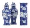 CHINESE THREE PIECE BLUE AND WHITE GARNITURE