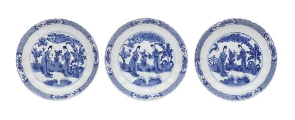 THREE CHINESE BLUE AND WHITE 'LANGE LIJSEN' DISHES