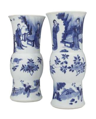 PAIR OF CHINESE TRANSITIONAL STYLE BLUE AND WHITE GU VASES