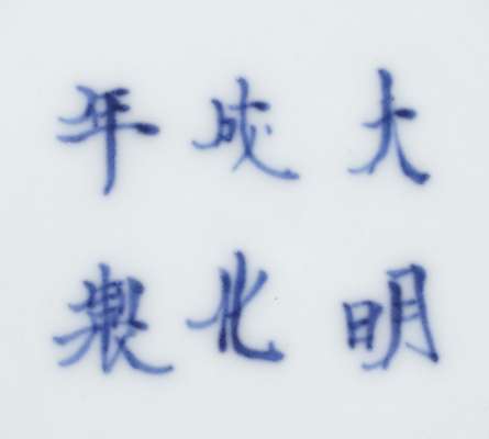 decorated with figures of courtly ladies in a garden and dancing boys, with peaches and chrysanthemum, six character underglaze blue Chenghua mark (2)