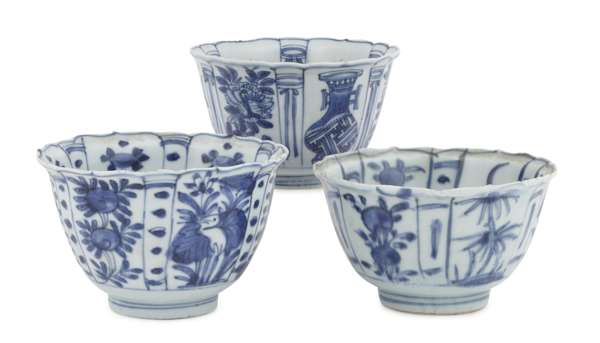 THREE CHINESE KRAAK WARE BLUE AND WHITE BOWLS