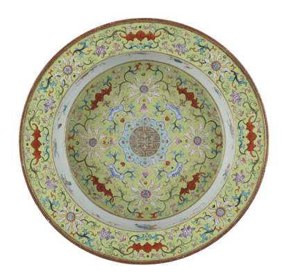 CHINESE FAMILLE ROSE GREEN GROUND BASIN