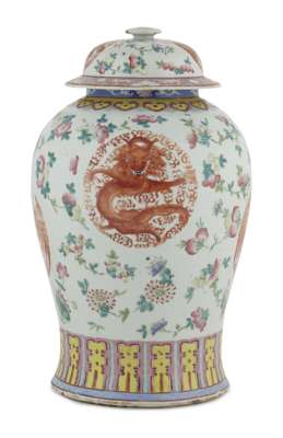 CHINESE FAMILLE ROSE COVERED WINE JAR