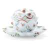 of lotus form, the sides painted with flower sprays and applied in relief with blossoming scrolling foliage