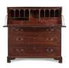 the rectangular top with a moulded edge over a fall front disguised as two drawers, opening to an interior fitted with pigeon holes and drawers, above three further long drawers, raised on shaped bracket feet