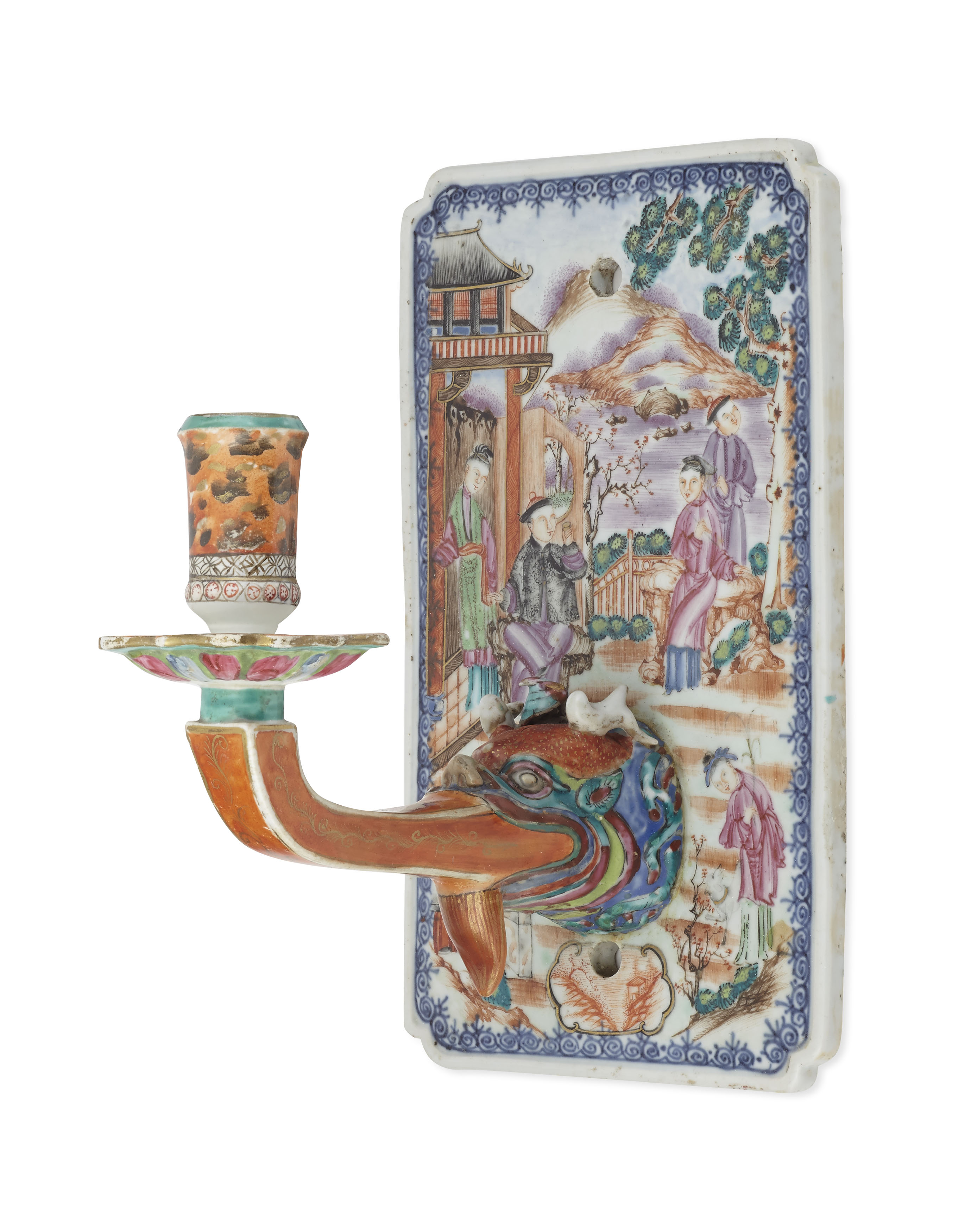 RARE CHINESE EXPORT FAMILLE ROSE 'MANDARIN' WALL SCONCE