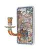 the rectangular backplate painted with courtiers and pavilions within a mountainous landscape, with a moulded dragon mask terminus issuing a curved candle arm with drip pan and candle nozzle