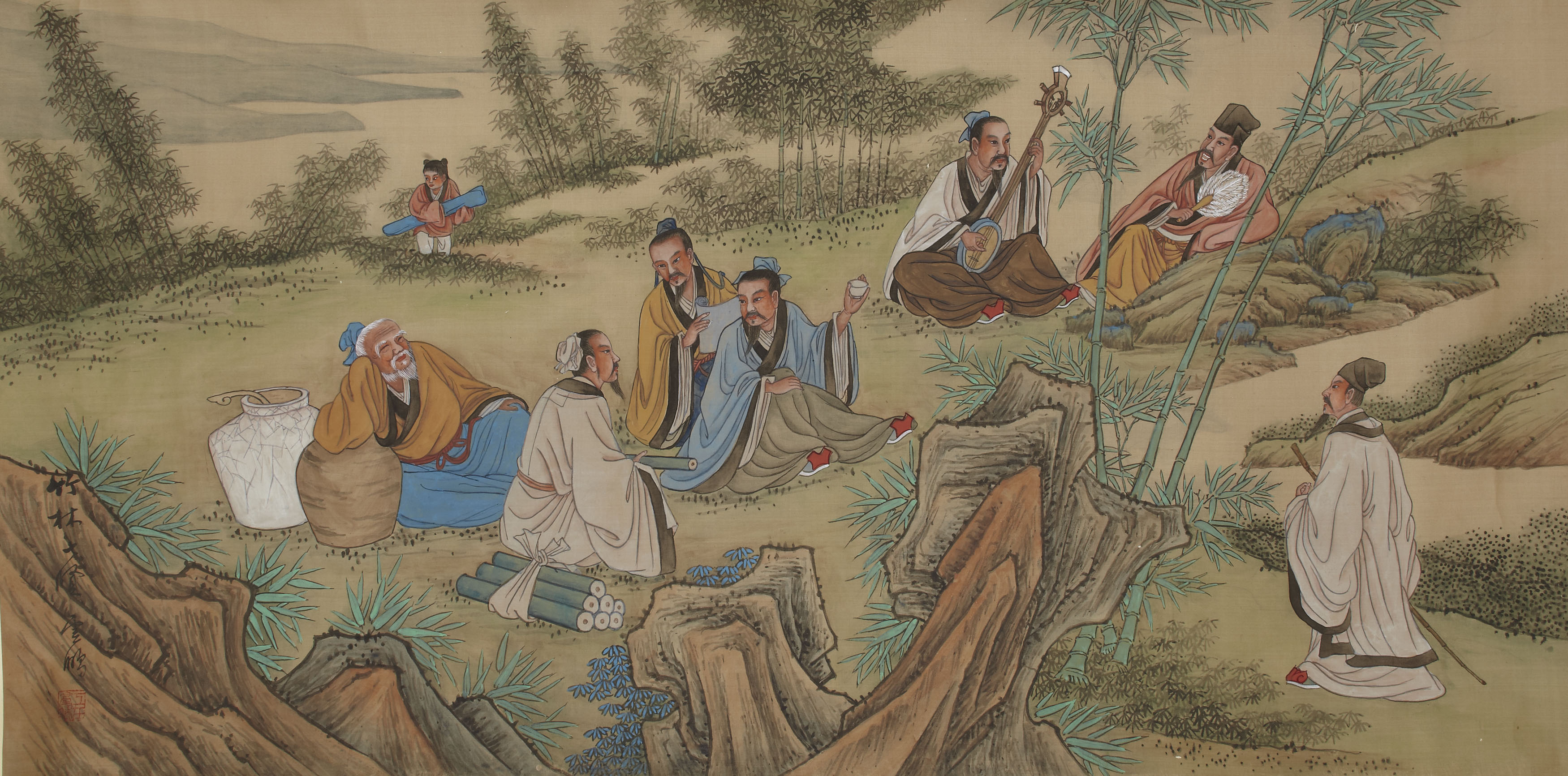 titled 'Seven Sages of the Bamboo Grove', attributed to Ding Yungpeng but later, ink and gauche on paper