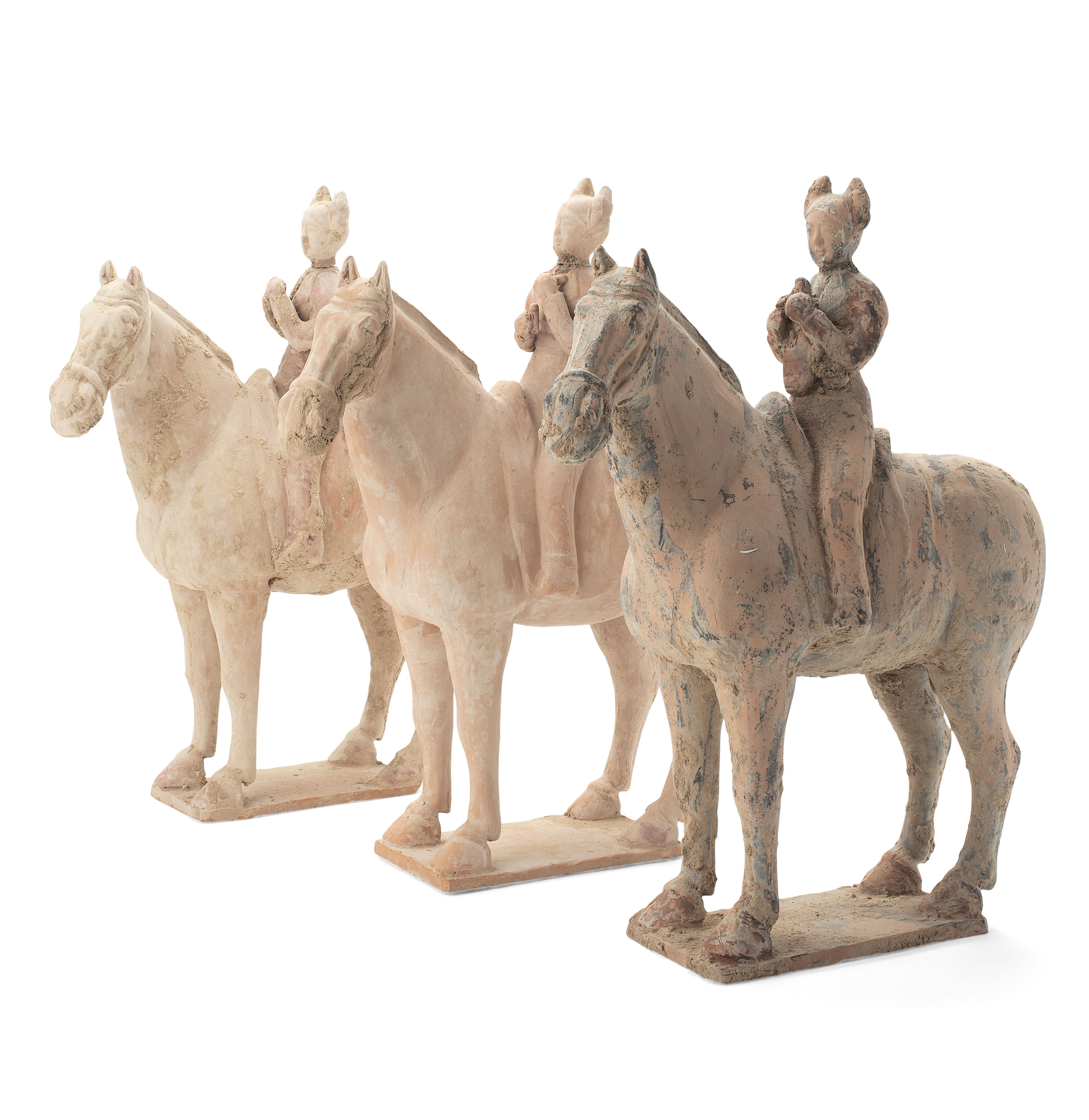 THREE CHINESE TERRACOTTA EQUESTRIAN MUSICIANS
