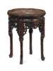 CHINESE CARVED HONGMU AND MARBLE TOP STOOL