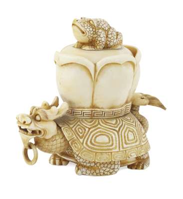 JAPANESE IVORY OKIMONO OF A TURTLE DRAGON