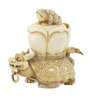 the figure with a ring in its mouth with a lotus blossom on its back surmounted by a toad, signature to the base