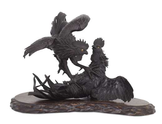 JAPANESE BRONZE FIGURES OF FIGHTING COCKERELS BY SEIYA CHU