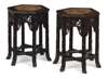 PAIR OF CHINESE CARVED HONGMU HEXAGONAL MARBLE TOP TABLES