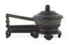 ARCHAIC BRONZE PAN AND WOOD STAND AND COVER