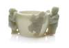 carved on the exterior with three boys clambering to peer inside, one boy holding a lingzhi fungus, the bowl with inverted rim and tapering to a flat base