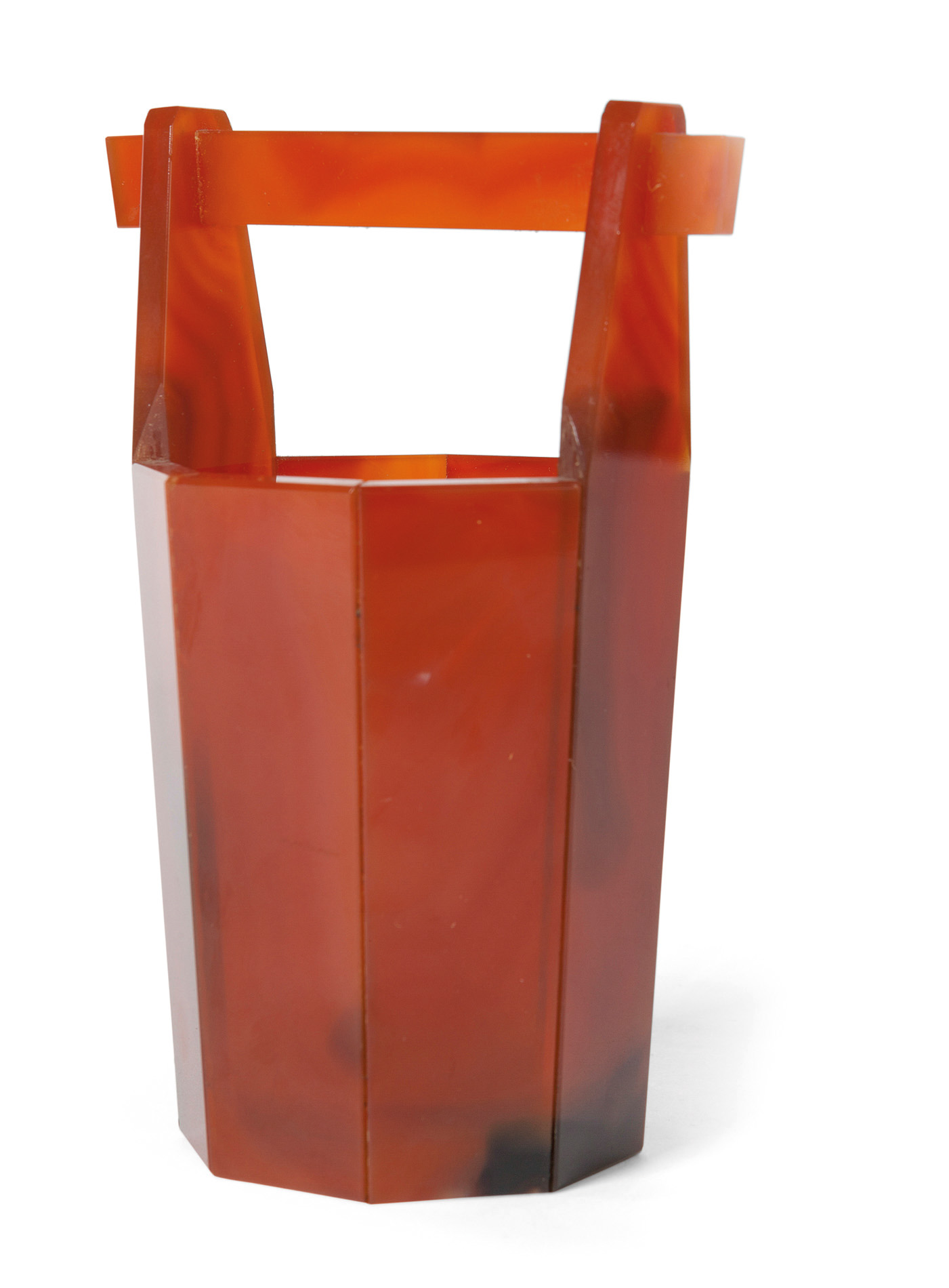 A SMALL CHINESE CARNELIAN AGATE BUCKET