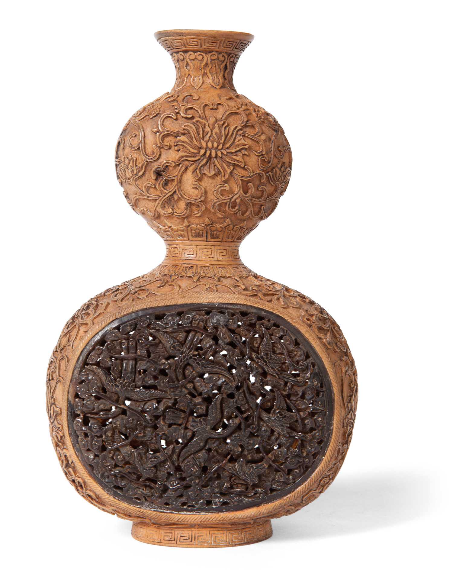 A BOXWOOD AND TORTOISESHELL DOUBLE GOURD VASE
