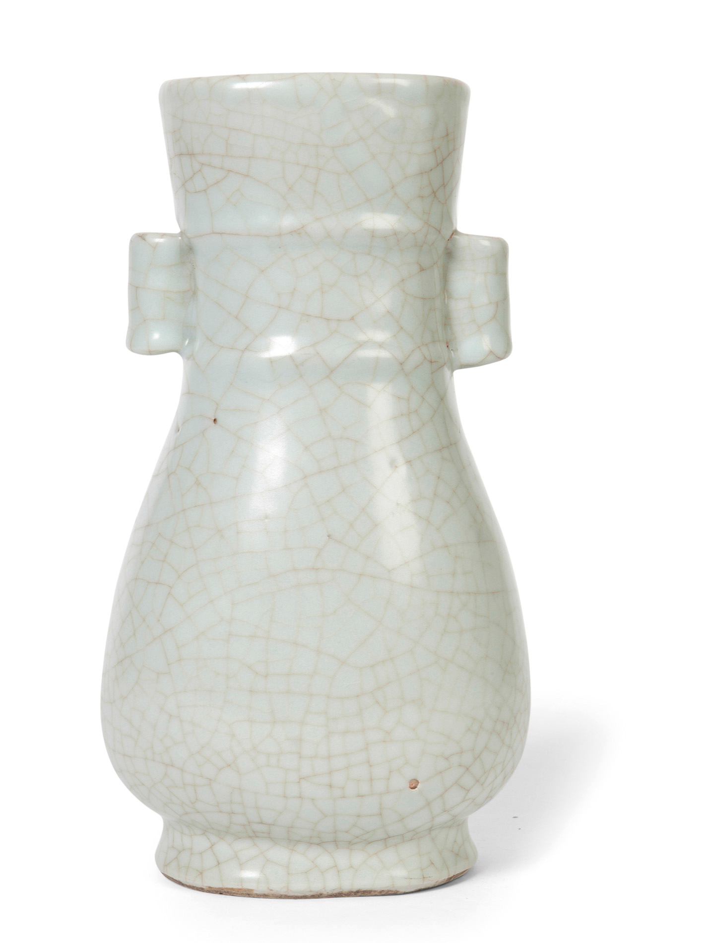evenly crazed all over, the neck with two parallel bands, the inside of the footrim glazed